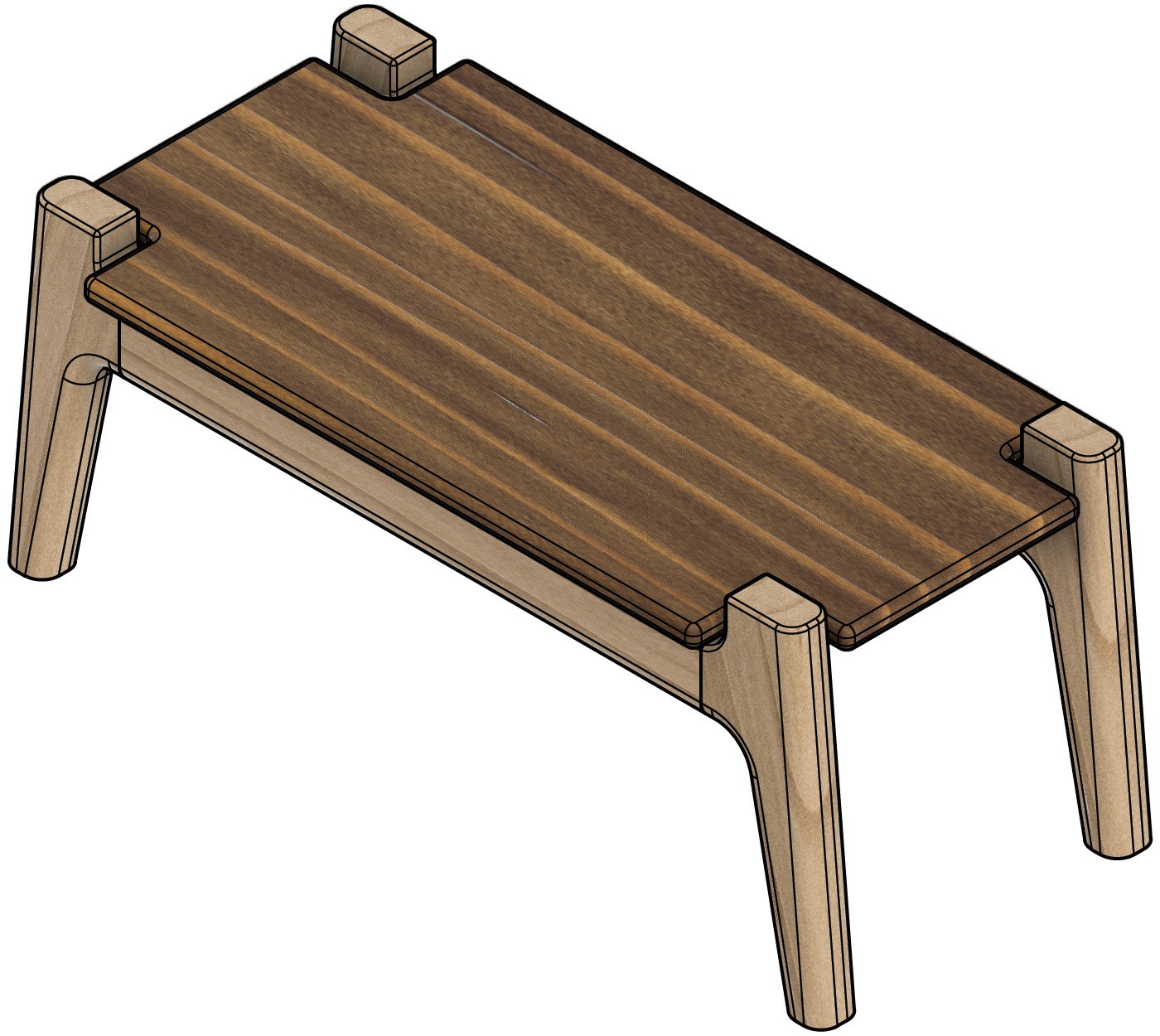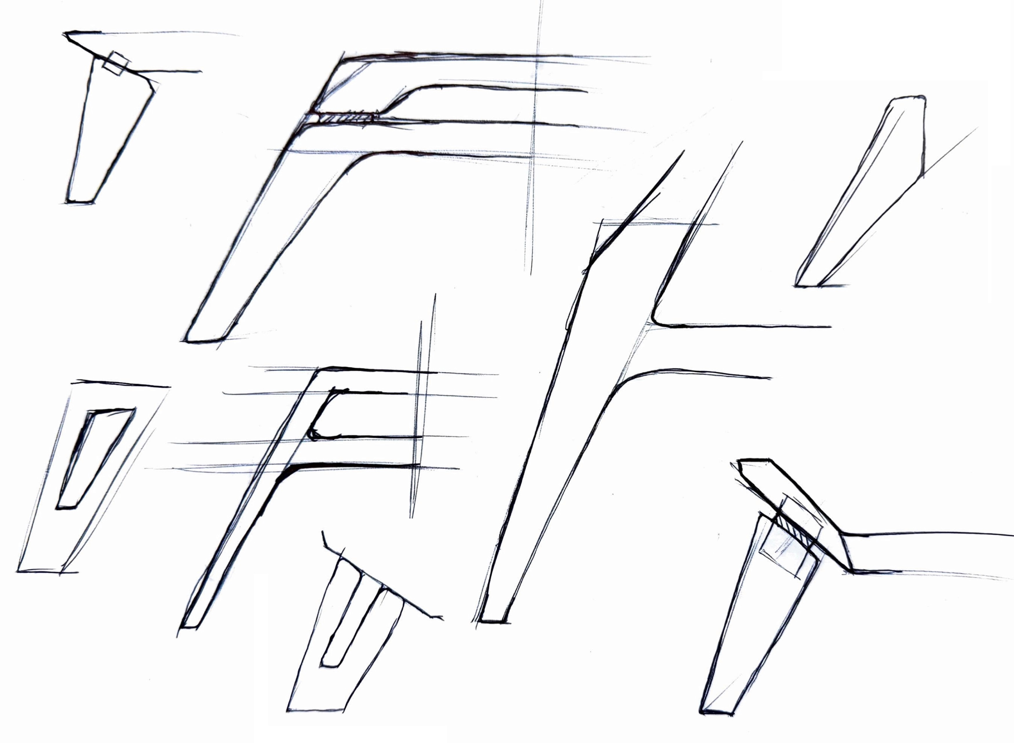 I knew I wanted to explore compound angled joinery with this bench, So After some initial leg design sketches, i quickly jumped into cad to explore design directions.